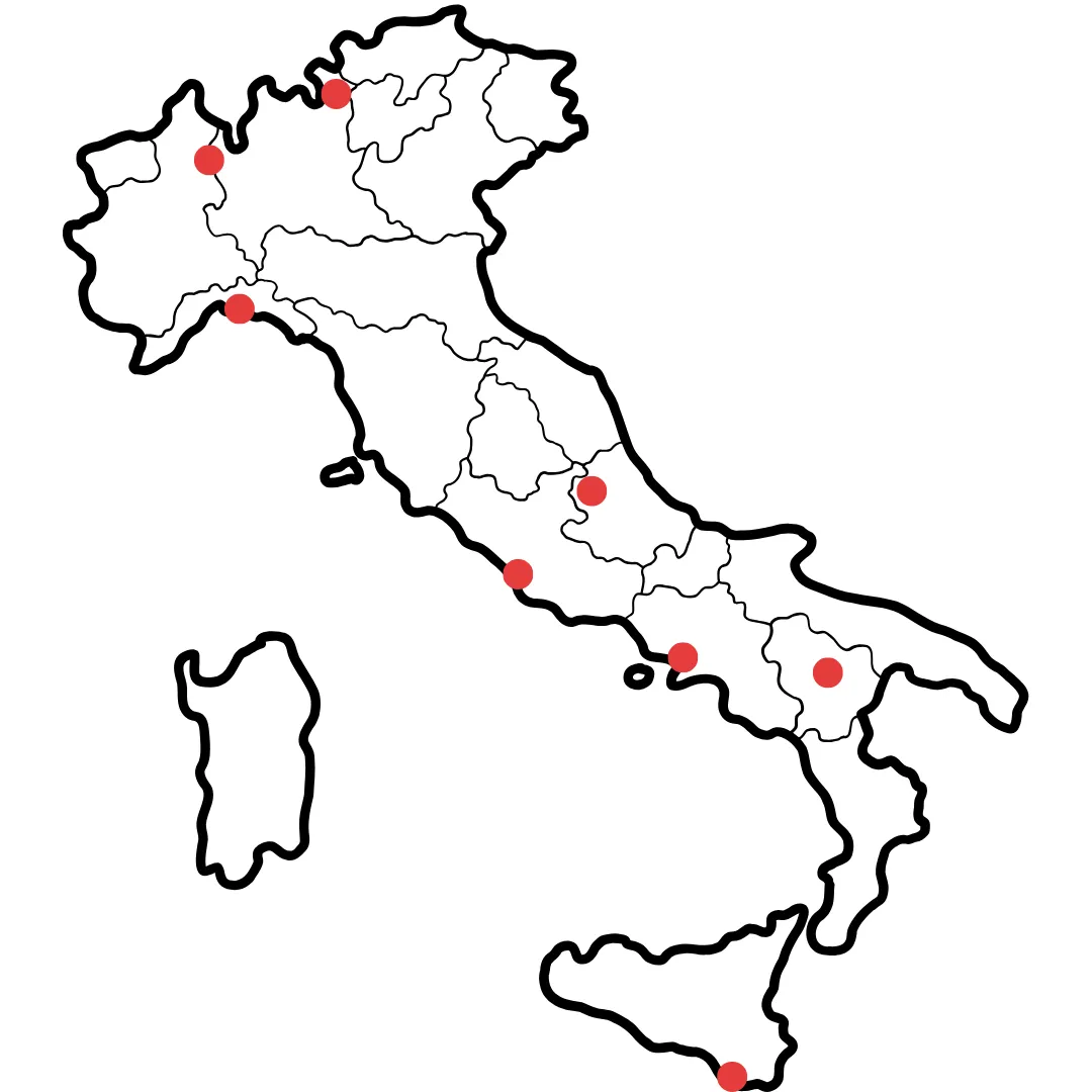 Nell’immagine puoi vedere le zone dove è già attiva una collaborazione. (aggiornata a Novembre 2024)